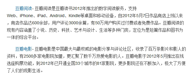 如果正文文字換成百度百科這種14號字體,就會顯得有種“傻大個兒”的感覺,在豆瓣上不夠精致細膩。(當然我不是說百度百科不好,畢竟不同網站面對不同群體,需要有針對性。)