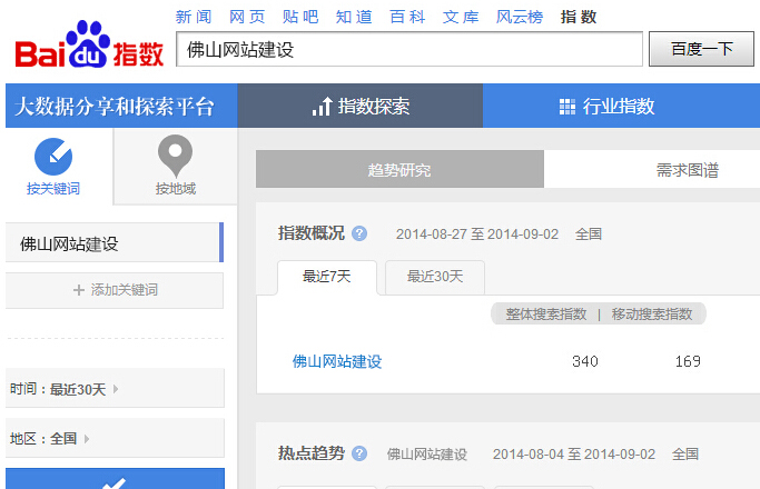 三、通過百度指數(shù)來了解相關(guān)關(guān)鍵詞的搜索量,通過這個(gè)可以很直接的知道您所需要確定的關(guān)鍵詞是否熱門,是否有一定的搜索量,咱們還是以“手機(jī)網(wǎng)站建設(shè),
