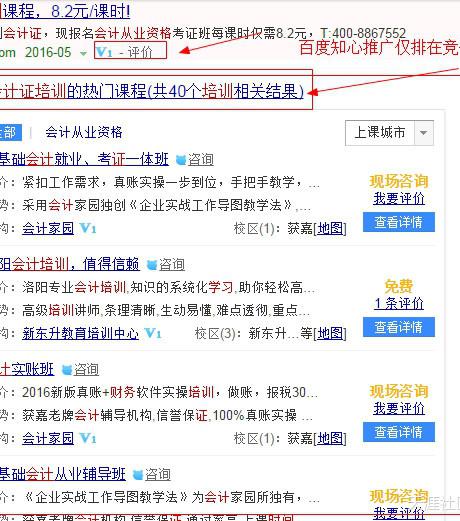 工作組第三個(gè)整改意見是百度出臺相應(yīng)的消費(fèi)者保障機(jī)制。其實(shí)這個(gè)百度以前就有,但沒有進(jìn)行過宣傳,所以知道的人,使用過的人不多?,F(xiàn)在百度在頁面右側(cè)位置放置的是相關(guān)企業(yè)的推薦,標(biāo)題上面就是“百度搜索,有V有保障”,點(diǎn)開下拉,說的是凡是加V企業(yè),都在保障計(jì)劃之內(nèi)??梢?,只有加V認(rèn)證的企業(yè)才有可能獲得右側(cè)推薦資格。