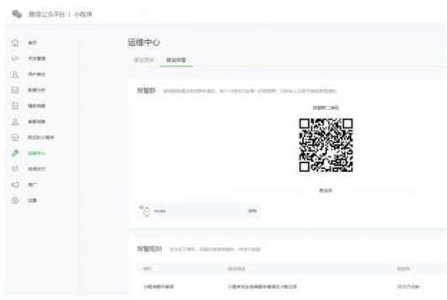 在運(yùn)維中心,開(kāi)發(fā)者可掃描二維碼加入小程序報(bào)警群。當(dāng)小程序在運(yùn)行中出現(xiàn)問(wèn)題時(shí),系統(tǒng)會(huì)推送信息告知報(bào)警群內(nèi)的成員。第三方平臺(tái)可代公眾號(hào)/小程序創(chuàng)建并綁定微信開(kāi)放平臺(tái)帳號(hào),幫助商戶識(shí)別來(lái)自不同公眾號(hào)或小程序的同一用戶,實(shí)現(xiàn)用戶身份打通。
