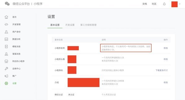 需要提出的是,未發(fā)布的小程序依然有三次改名機會。微信開放個人小程序改名功能,對于注冊的時候臨時起意命名的開發(fā)者來說,終于有“后悔藥”了。