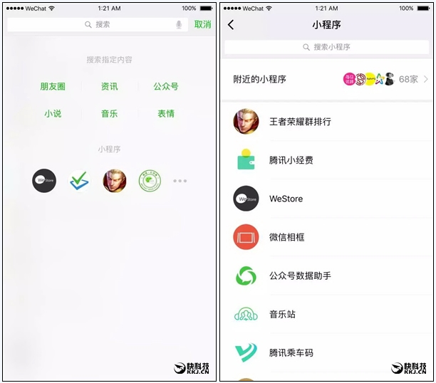 如今在微信搜索框下方,所有使用過小程序的用戶,都能看到小程序的快捷入口,點(diǎn)擊小程序Logo后就可以直接打開對(duì)應(yīng)的小程序。
